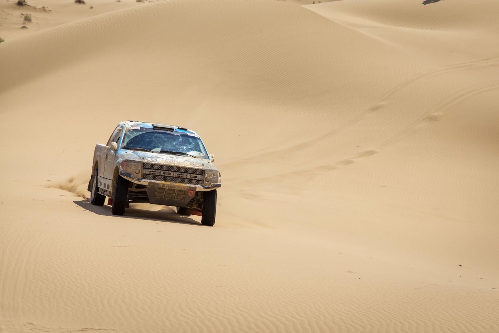 - Попали в какую-то природную полосу, аномалия. Прошел сильнейший дождь, столько воды, всё залито, и перемещаться было крайне сложно. Я ехал быстрее впереди и заехал в непонятную грязь. Выбираться приходилось с помощью наших друзей, помогали там сандтраки и так далее, потому что машина провалилась. А в общем и целом, песок такой грамотный, я скажу сегодня. Причем на вершинах не было видно рельефа вообще. Солнце находится в пике и барханы не оттеняются. Едешь будто по чему-то абсолютно желтому, только по машине чувствуешь что подпрыгивает, - комментирует лидер четвертого этапа пилот команды Kazakhstan Андрей Чередников.