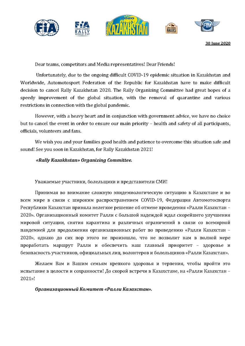 Press Release Rally Kazakhstan 2020_30.06 Вернуться назад Оставить комментарий перейти ФИО * E-mail Сообщение *